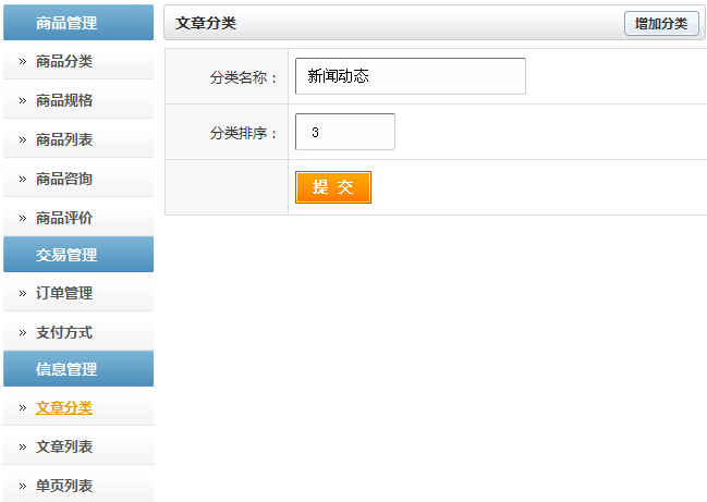 2.點擊“增加分類”即可增添新的分類名稱,如下圖所示: