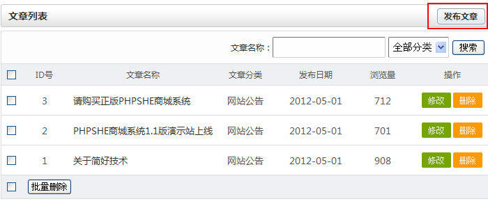 PHPSHE文章管理