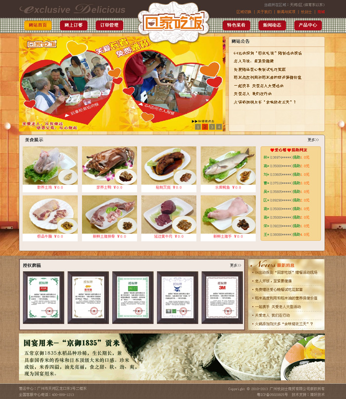 “回家吃飯”餐廳于2012年7月正式在廣州天河區(qū)商圈中心地段開業(yè)。