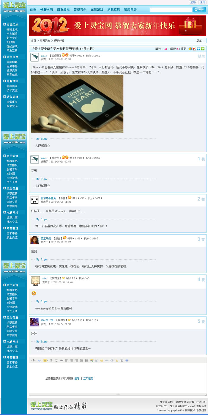 靈寶地區(qū)高人氣的社區(qū)門戶。愛上靈寶網(wǎng)包含暢聊水吧、網(wǎng)友播報、影視音樂、求職招聘、租房售房、資源交易、商家信息等熱門板塊,為靈寶人民提供全面及時的生活信息,是靈寶人民最喜愛的專業(yè)網(wǎng)站和生活信息庫。