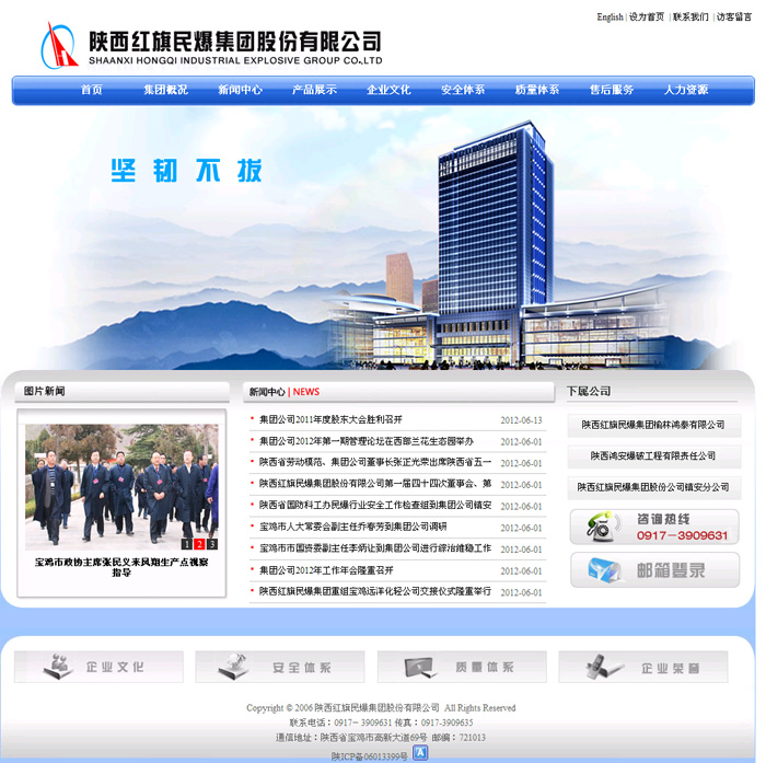 陜西紅旗民爆集團(tuán)股份有限公司是由陜西紅旗民爆集團(tuán)有限責(zé)任公司整體變更設(shè)立的股份有限公司,是集民爆產(chǎn)品研發(fā)、生產(chǎn)、銷(xiāo)售和爆破服務(wù)一體化的國(guó)有控股企業(yè),是陜西省內(nèi)成立最早的民爆企業(yè)集團(tuán),也是國(guó)內(nèi)最早從事工業(yè)炸藥生產(chǎn)的企業(yè)之一。
